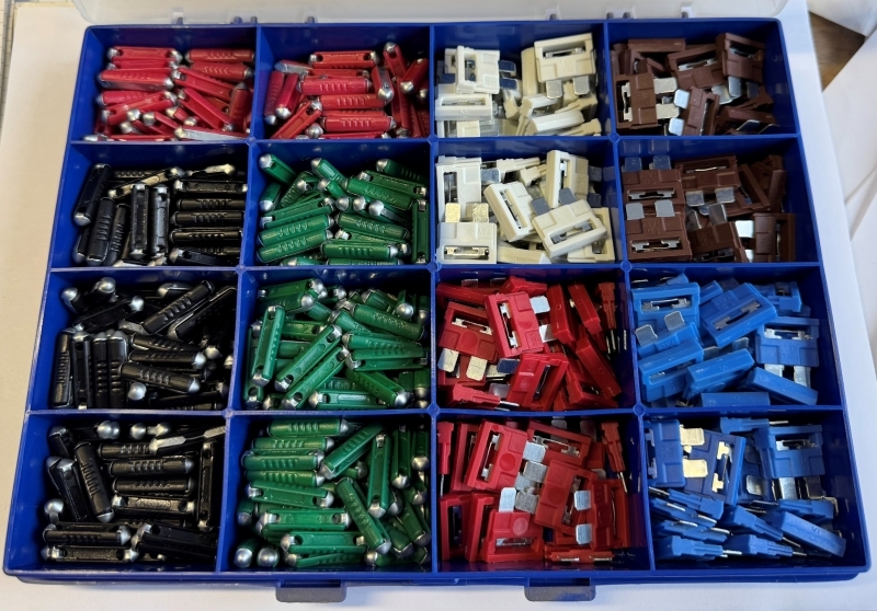 600 stk. sikringer i forskjellige størrelser.