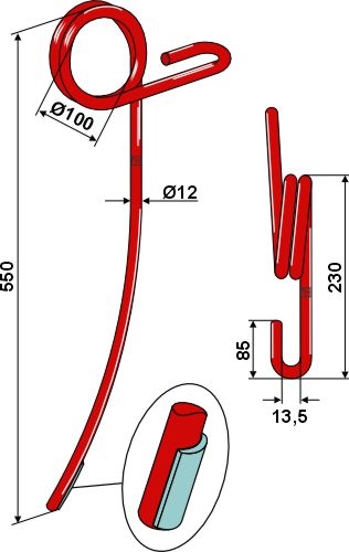 Väderstad etterharvetann 12 mm bøygd forsterka med laser cladding.
